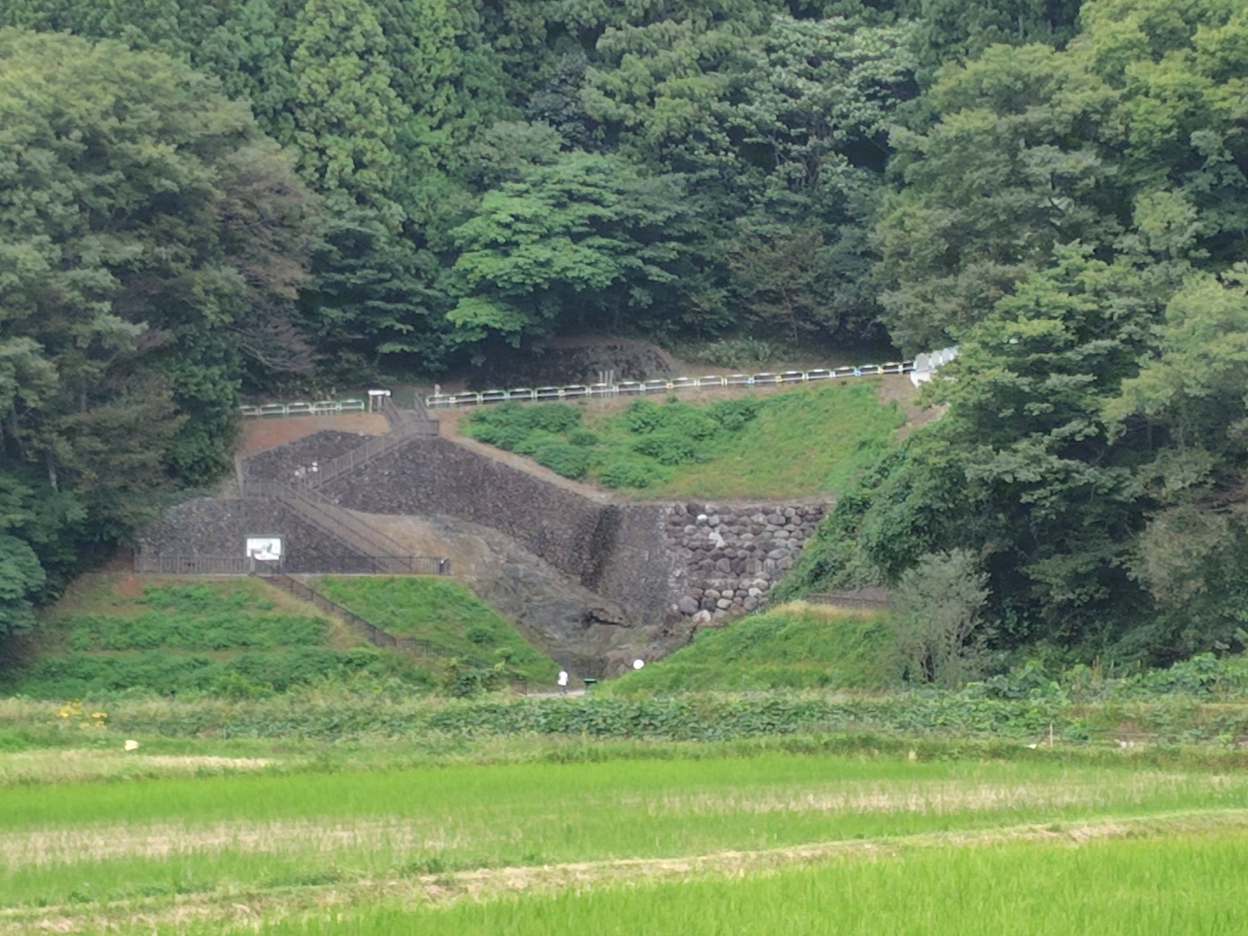 遠くに見えるのが、フォッサマグナ断層の露頭がある場所。