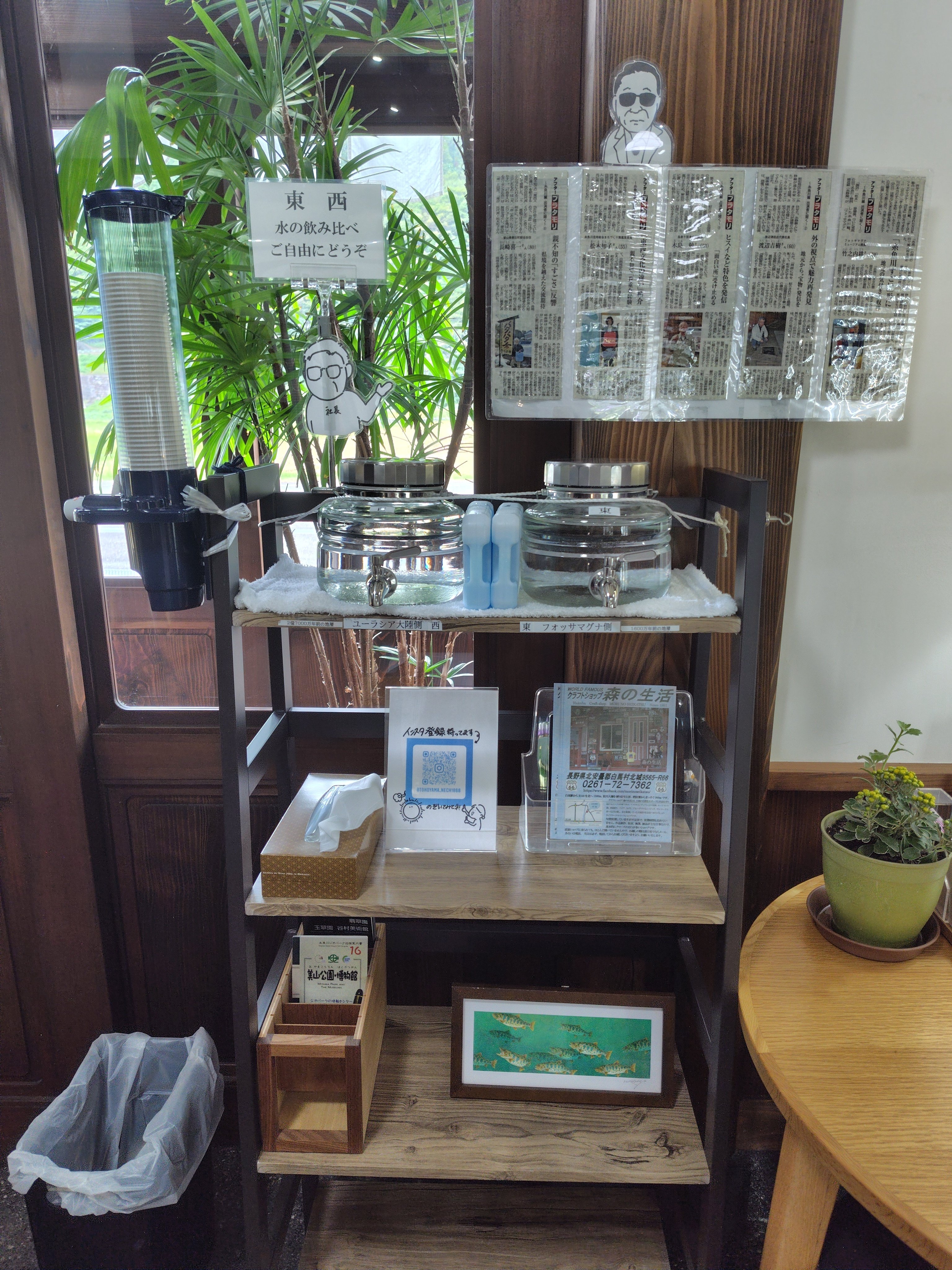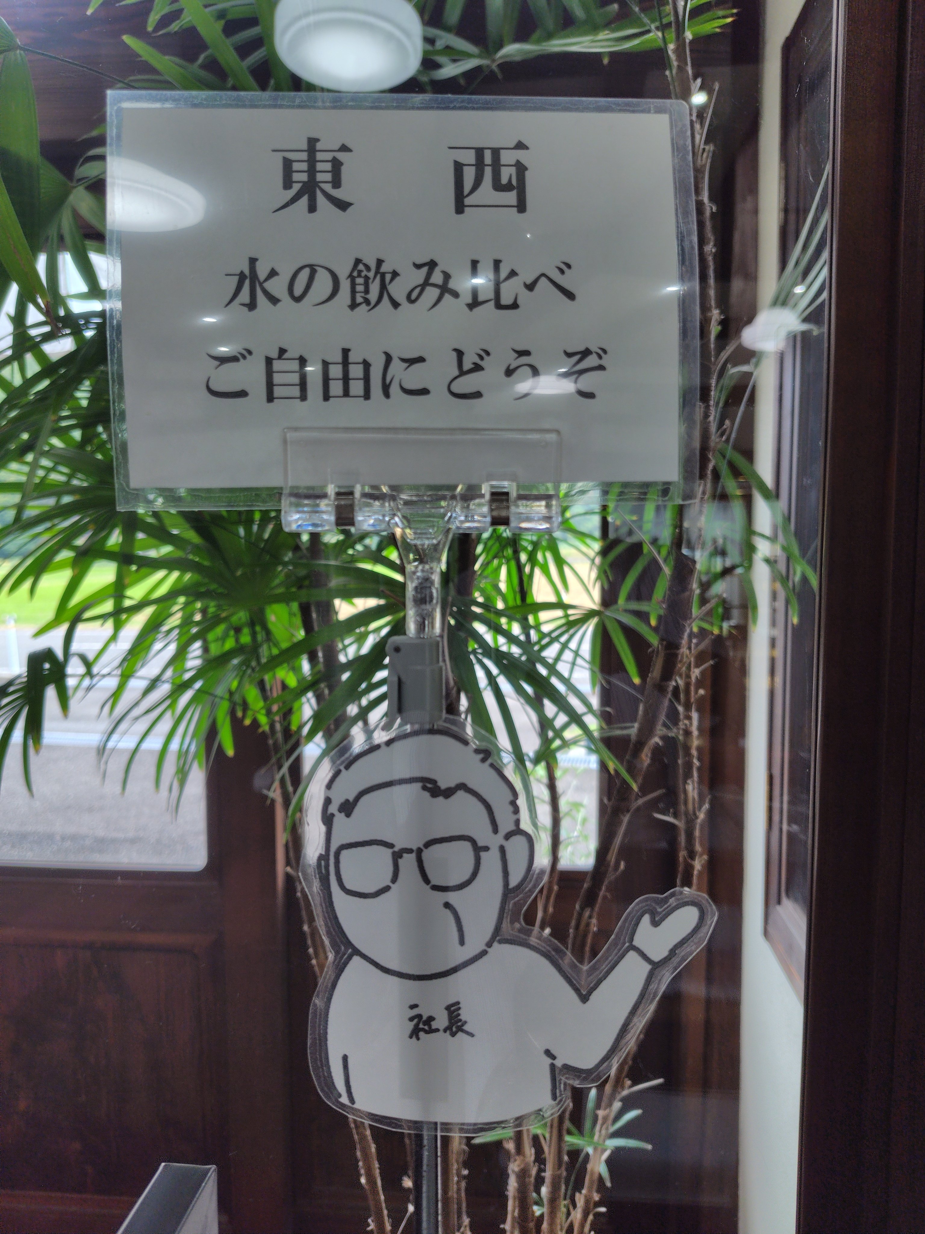 真柏の位置から振り返えると、ブラタモリで紹介された「東西」看板あり。