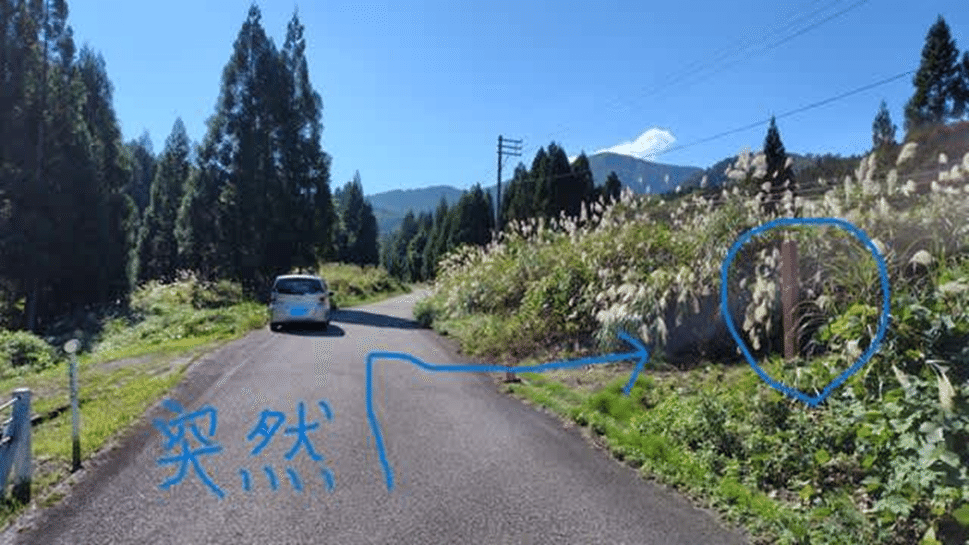 ・道はどんどん雑木林の坂をつづら折りに下って、