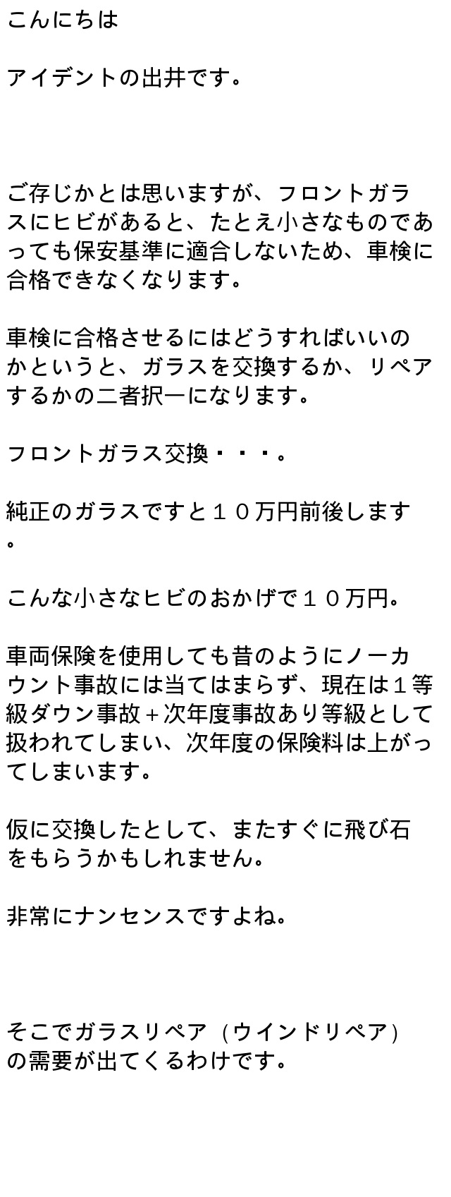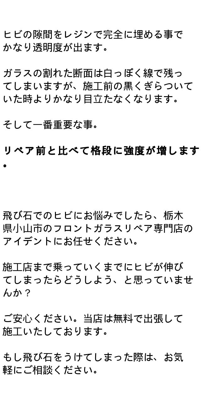 ヒビは小さなうちにリペアする事が肝心 | カーリペア専門店iDentのブログ