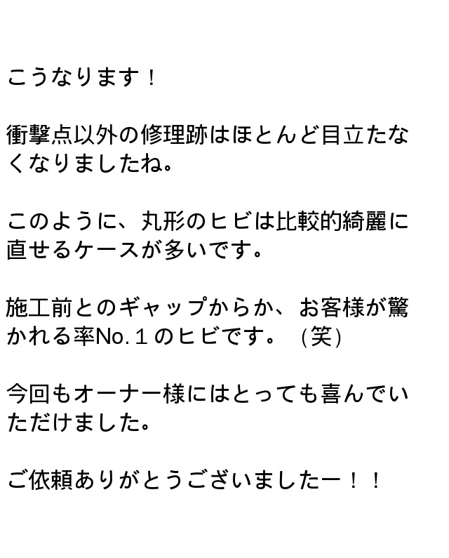 意外と綺麗に治るんです。 | カーリペア専門店iDentのブログ