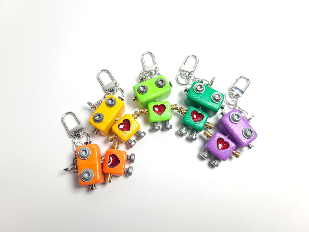 コンピューターの部品をアップサイクルして作られた、ちいさなロボットキーリング。