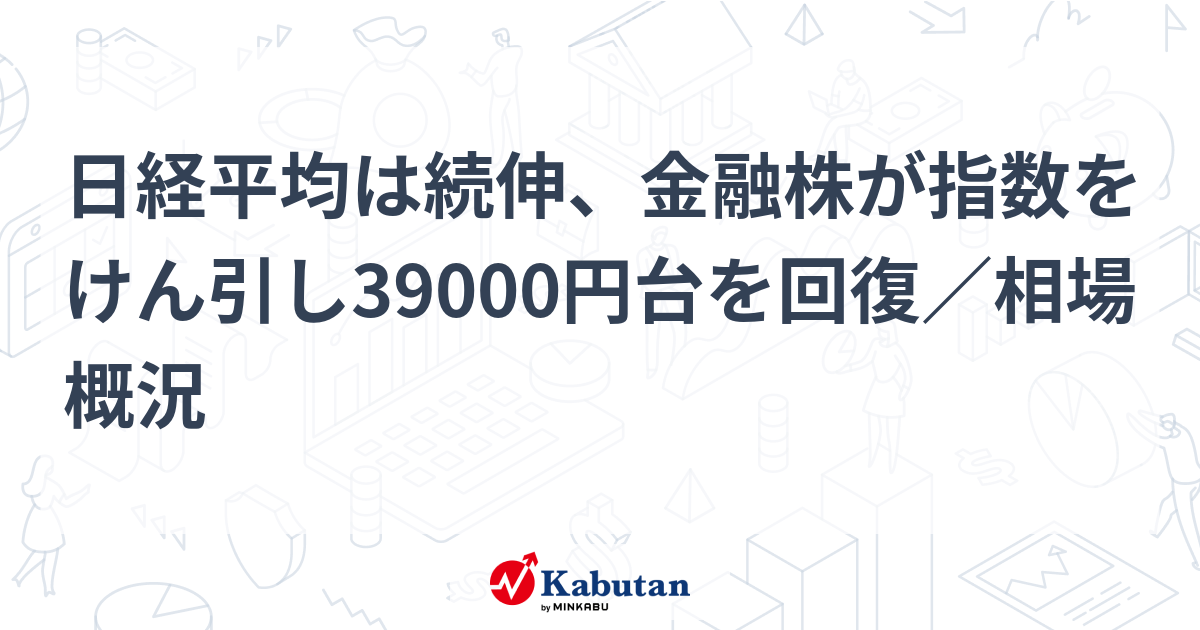 日経平均は続伸、金融株が指数をけん引し39000円台を回復/相場概況 | 市況 - 株探ニュース24日の米国株式市場はまちまち。ダウ平均は260.88ドル高(+0.67%)の39411.21、ナスダック指数は192.54ポイント安(-1.09%)の17496.82、S&P500は16.75ポイント安(-0.31%)の5447.87で取引を終了した・・・。kabutan.jp