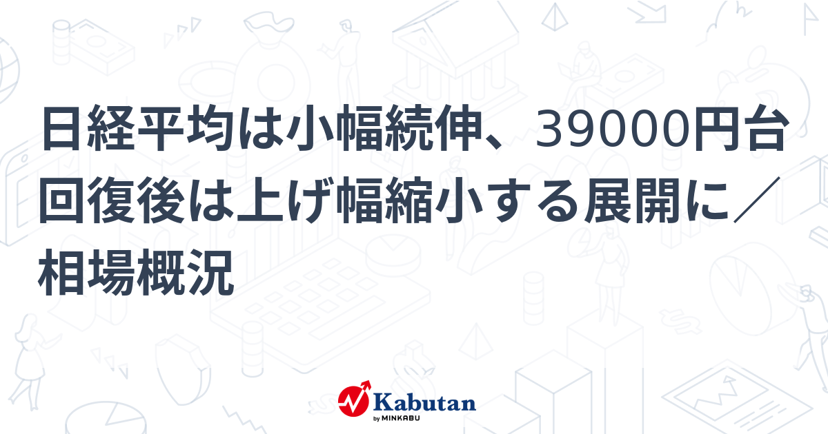 米国株の上昇や為替の円安推移などを材料に、東京市場は買い優勢で取引を開始した。日経平均は39000円台に乗せてスタートしたが、買いは続かず失速。今晩の米国株式市場が休場のため、積極的な買いは入らず日経平均は上げ幅を縮小。後場は前営業日終値水準でのもみ合いとなったが、75日移動平均線が位置する38646円水準は維持して終えた。