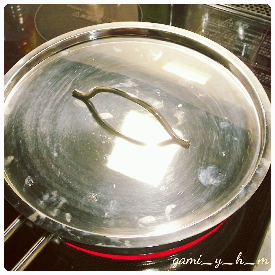 ・白ワインを加えたら蓋をして5分程度蒸し焼きにします。