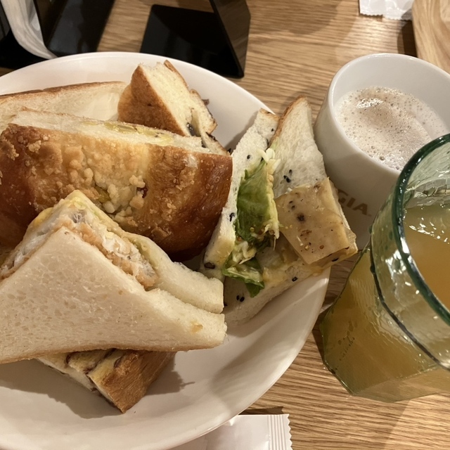 (コップはドリンクコーナーにあるものを、お皿はパンコーナーにあるものを使う)