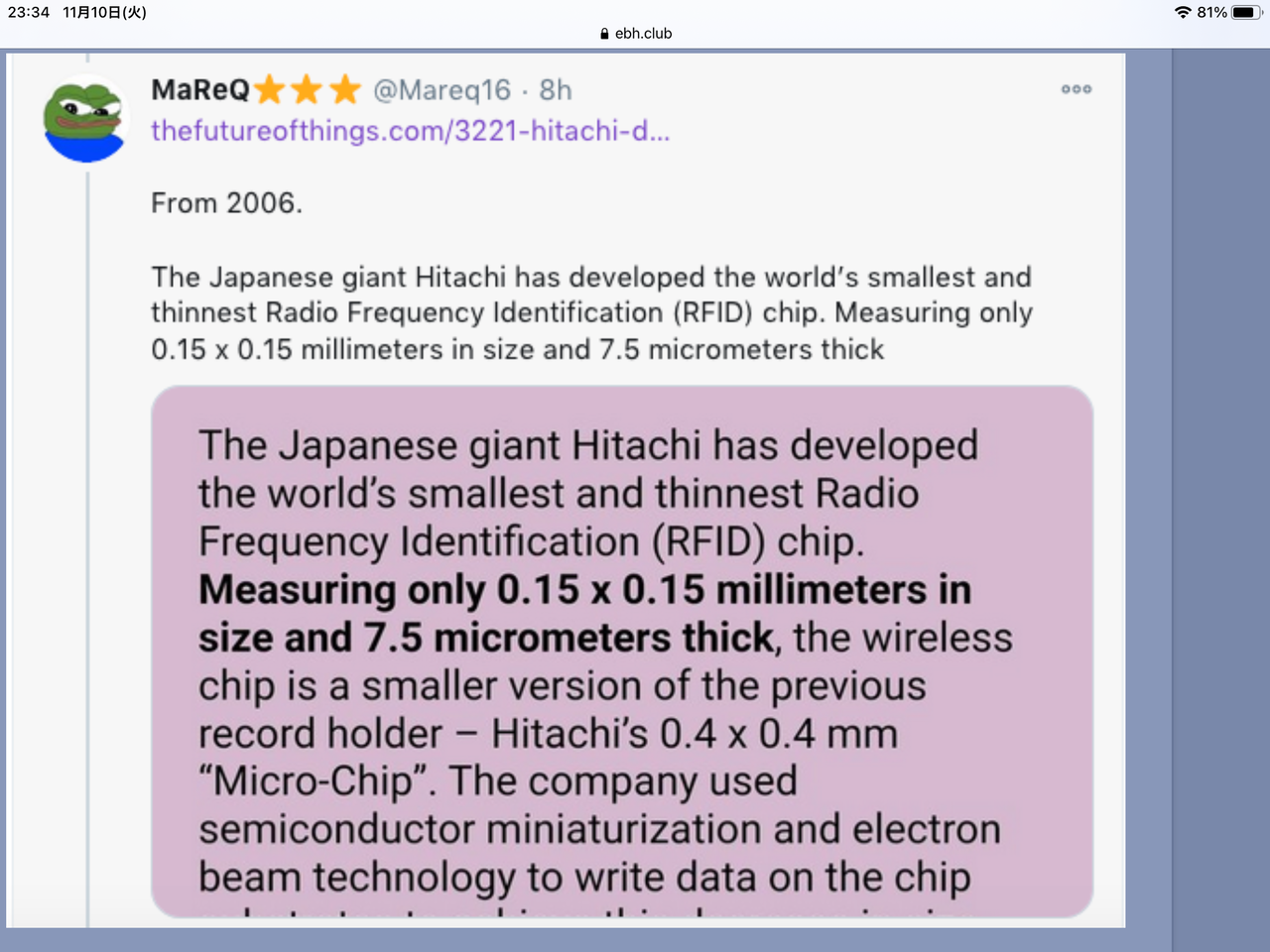 「日本の巨人日立は、世界最小かつ最薄の無線周波数識別(FRID)チップを開発しました。