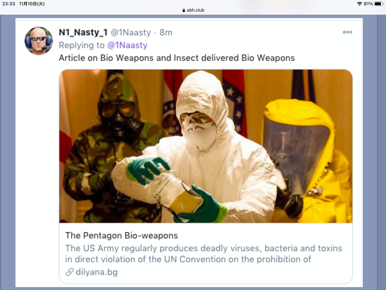 米陸軍は、国連条約の禁止に直接違反して、致命的なウイルス、細菌、毒素を定期的に生産しています。
