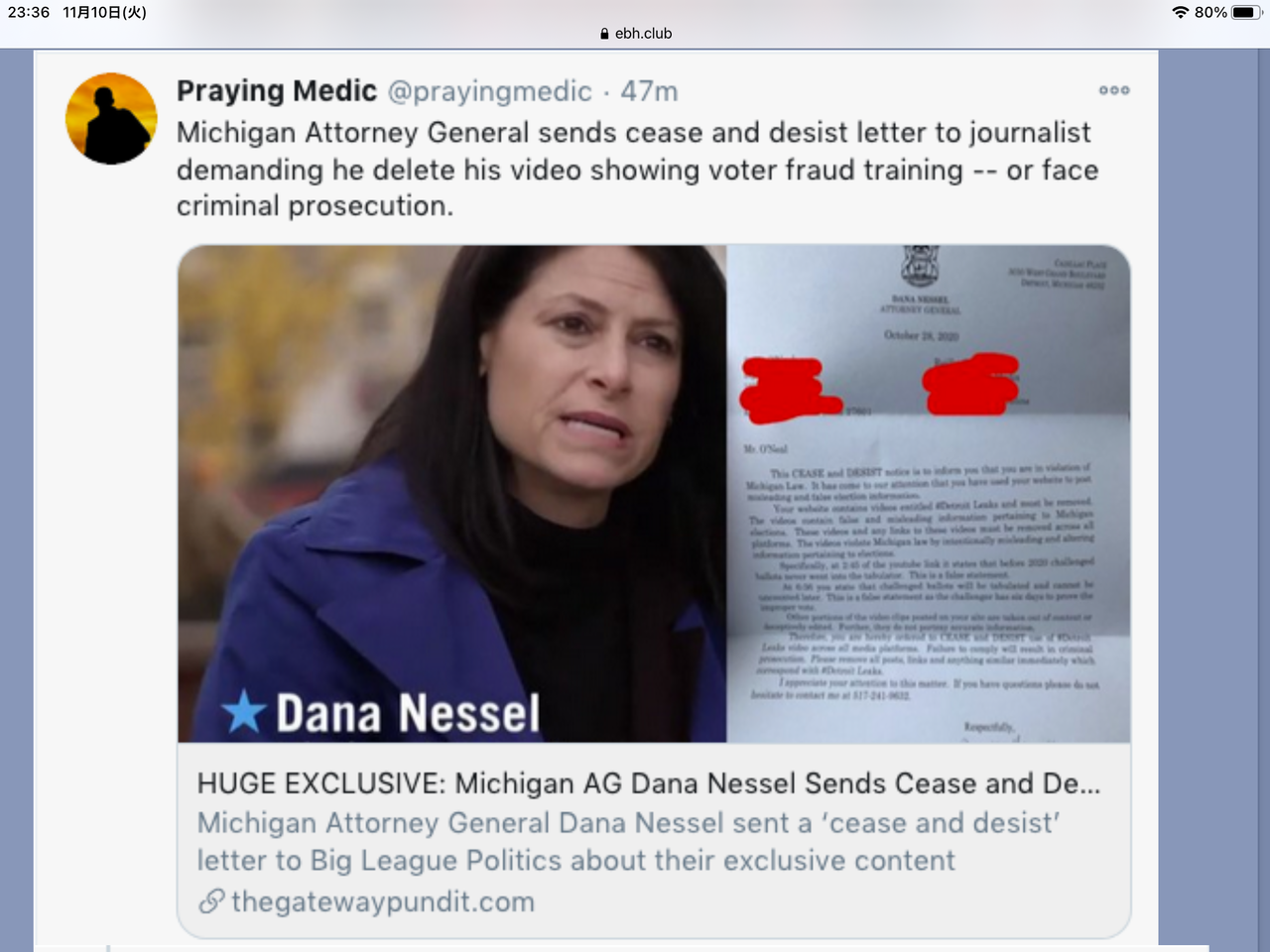 ミシガン州司法長官はジャーナリストに手紙を送り、不正選挙の訓練を示すビデオを削除するよう要求するか、刑事訴追に直面します。