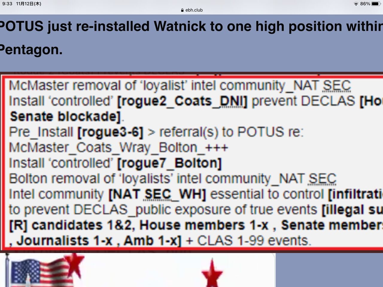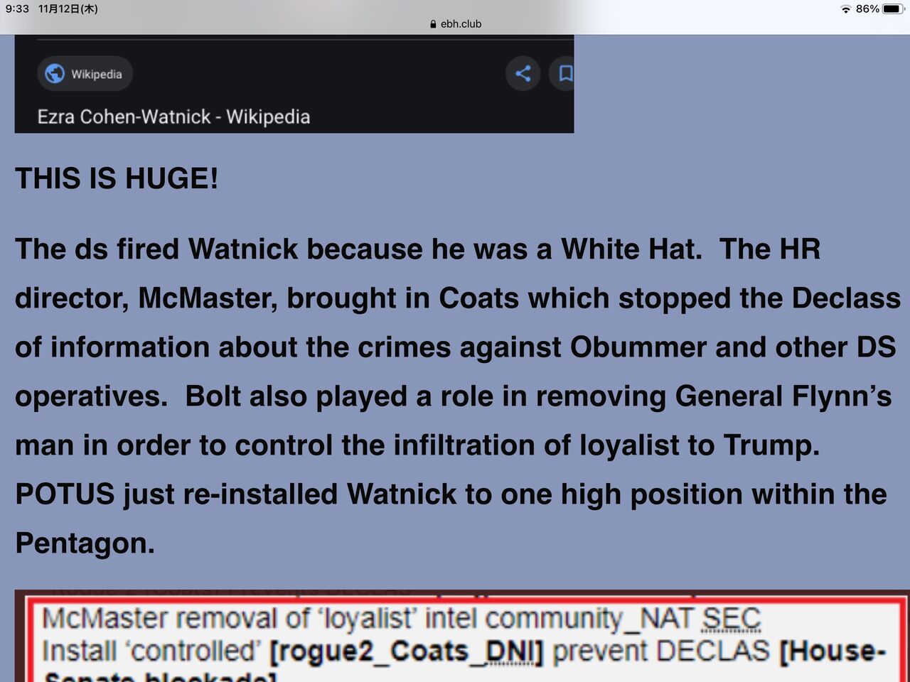 彼はホワイトハットだったので、ディープステートはワーニックを解雇した。 人事部長のMacMasterは、オバマ(Obummer)や他のDS工作員に対する犯罪についての情報があれば、Declassを止めたCoatsを持ち込みました。 ボルトはまた、トランプへのロイヤリストの侵入を制御するために、フリン将軍の男を取り戻すのに苦労した。米国大統領( POTUS)は、ペンタゴン内の1つの高い位置にワーニックを再インストールしました。