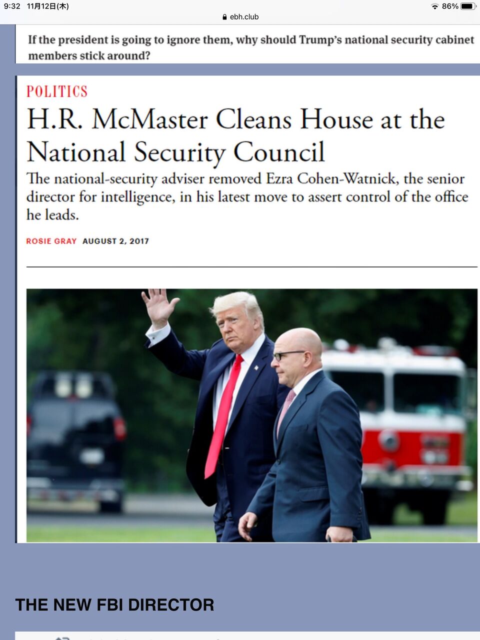 H.R.MacMasterが国家安全保障会議で家を掃除する