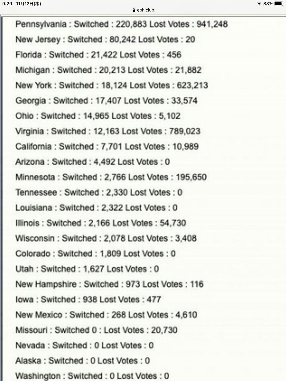 データは、切り替えられたすべての投票がトランプから取られバイデンに与えられていた!