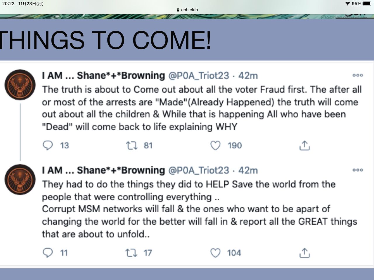真実は最初にすべての不正投票について出ようとしています。結局のところ、またはほとんどの逮捕は「行われた」(すでに起こった)すべての子供たちについて真実が出てきます&それが起こっている間「死んだ」すべての人が 「なぜ生き返るのか」説明します。