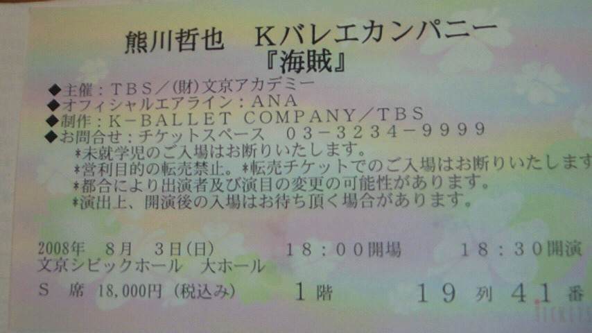 熊川さんは怪我ででれませんでしたが、吉田都さんが今日の公演に出演、他の出演者特に熊川さんの代役の遅沢さんも熱のこもった良い非常によい出来だったと思います。海賊は見所がたっぷりで面白いですが、やはり、回転しながらの着地なども多く、膝に負担がかかることも容易に想像できます。