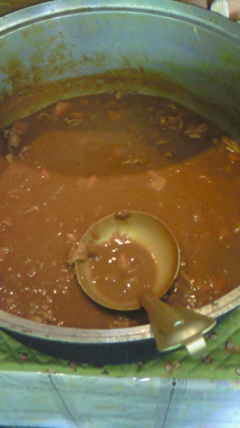 昨日作りすぎたカレーライスが朝ごはんにでています。