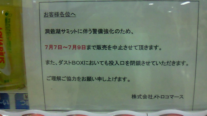 サミット開催のため地下鉄内の自販機は東京でも発売禁止に