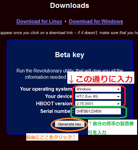 電源ボタンを一度押すと、右上になにかのゲージが表示され、「Do you want to start Update? yes no」という画面が表示されます。(PC36IMG.zipがSD直下にないと出てきません。) そこで本体右側の音量ボタンプラスを押すとカスタムリカバリが焼かれ始めます。すぐに終わります。 終わったら「Do you want to reboot device? VOL UP yes VOL DOWN no」という画面が表示されます。 そこで本体右側の音量ボタンマイナスを押します。 すると「HBOOT」メニューに入ります。 そこで本体右側の音量ボタンマイナスを一回押して「RECOVERY」を選択し、電源ボタンを押して決定します。 すると少し待った後にClockWorkModRecoveryTouchが起動します。