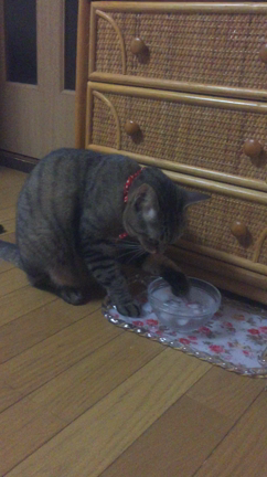 オヤツ待ちの猫