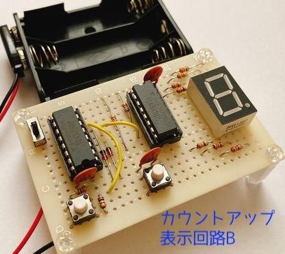 キットの7セグはカソードコモン、大型7セグはアノードコモンといって、7本のLEDの共通になっている電極が反対になっています。