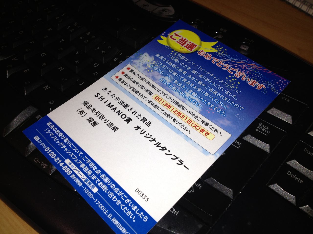 シマノビッグチャンスフェアで当選しました! | 兄者新聞 とりとめのない毎日とありふれた日常