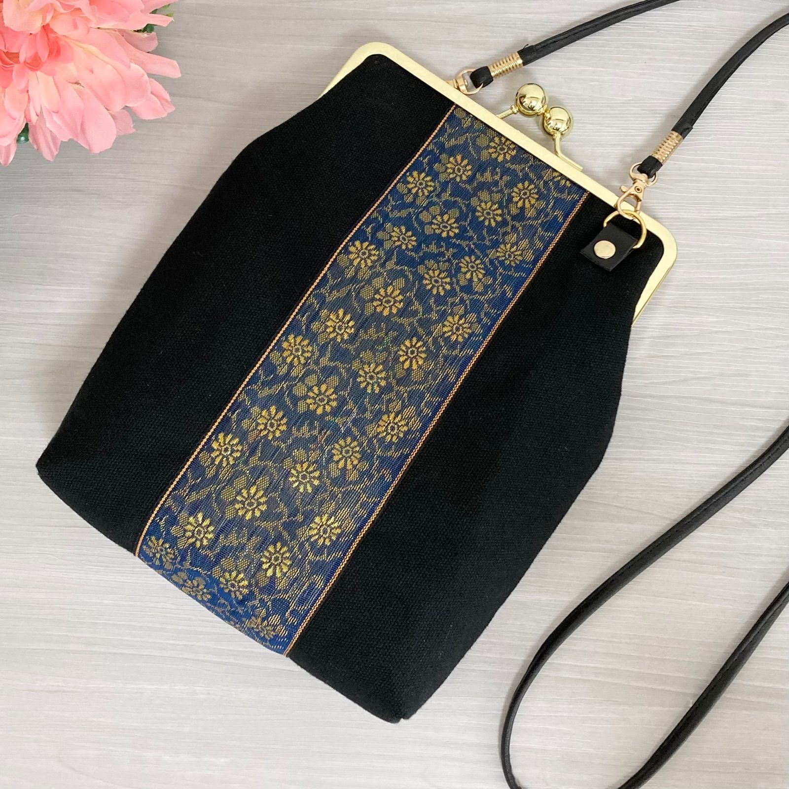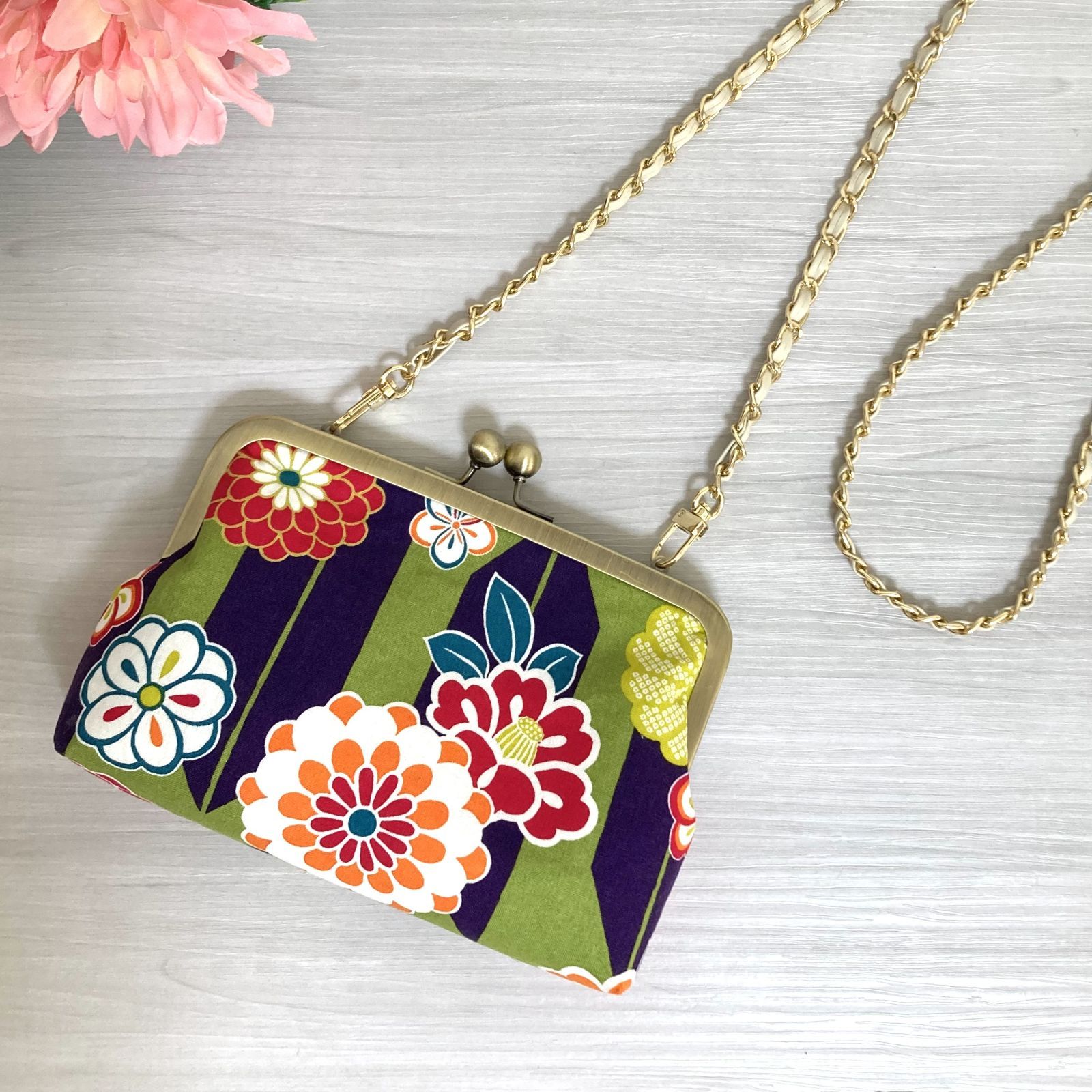 和柄のがま口ショルダーバック!