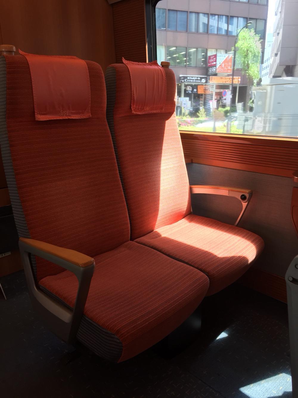 とまあ、出勤状況も知ってもらえたところで、ぼく初めてロマンスカーに乗ってます。