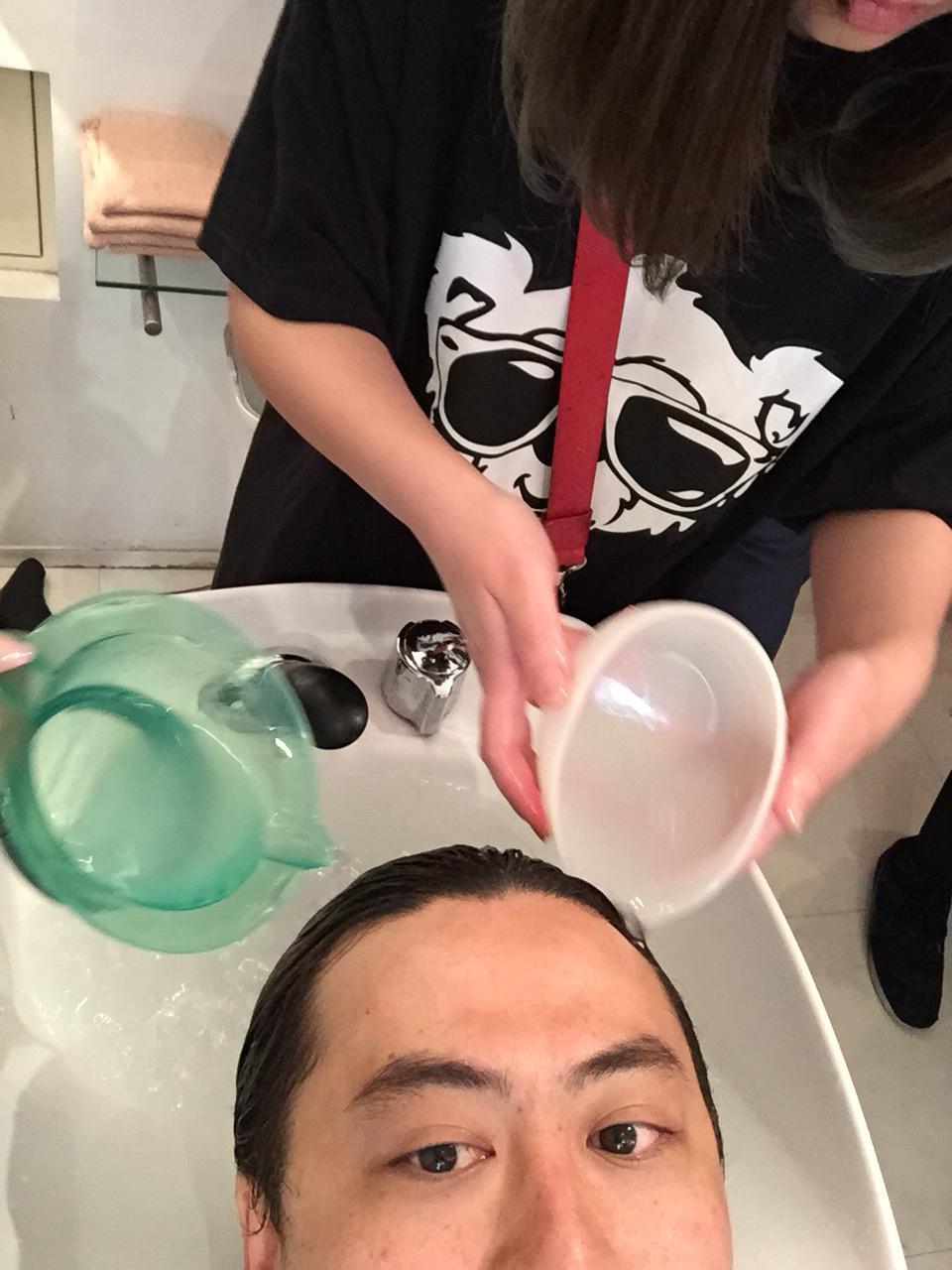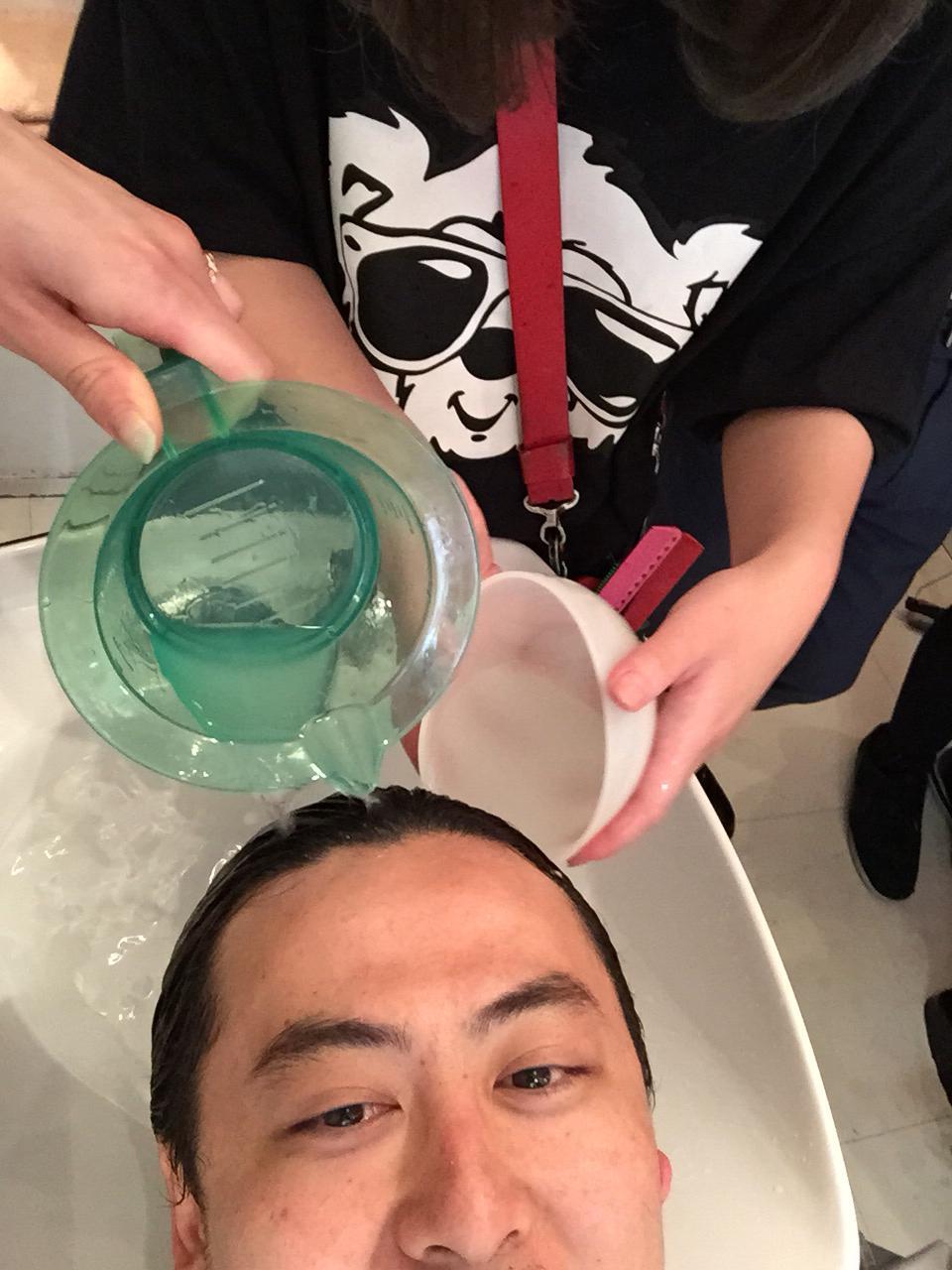 髪に必要な成分を溶かしたお湯をバシャバシャかけます。