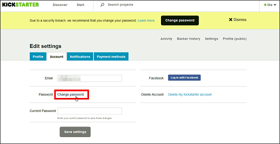 なお、Kickstarterのパスワード変更手順は以下のようになります。