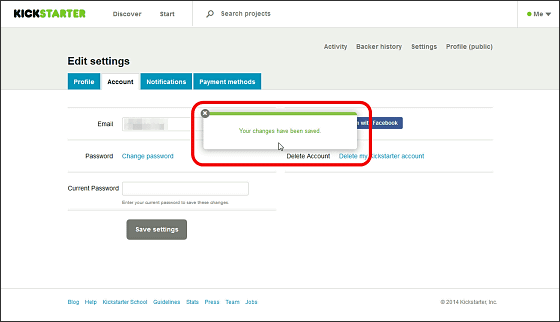 ハッキングが発覚した後、2つのKickstarterアカウントで不正なアクティビティが検出されたそうですが、それ以外に現在のところ被害はないそうです。また、ハッキング発覚以降にFacebookアカウントを使ったログイン情報はKickstarter側で全ていったんリセットされたので、Facebookアカウントを使ってKickstarterにログインしていたユーザーは再度Facebookアカウントにて接続認証をする必要があるとのこと。