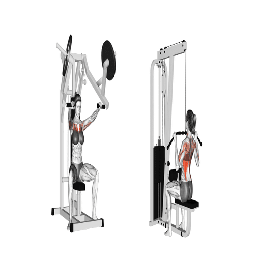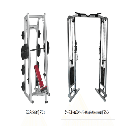 マシンはフリーウェイトと異なり、動きが固定されているため、特定の筋肉を狙って運動するための器具です。ジムで最も多くのスペースを占めるのがマシンで、スミスマシンやケーブルクロスオーバーマシンなどがあります。スミスマシンはラックとバーベルを組み合わせた器具で、多様なバーベル運動が可能です。ケーブルクロスオーバーマシンは、ケーブルを使って多方向に運動ができる大きな器具です。