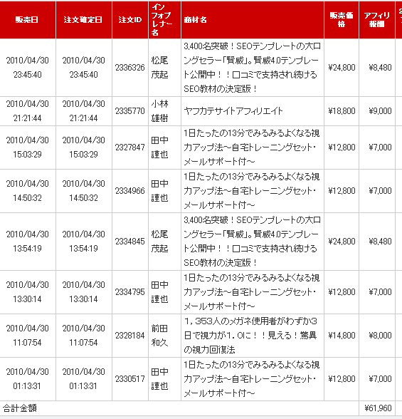 情報教材だけで6万円ちょい売れました