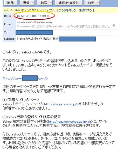 4月2日に作ったサイトがもうヤフカテ審査に通過しました。