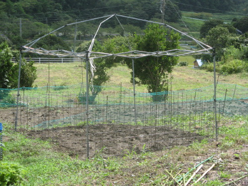 支柱、金網、防獣網を施す。