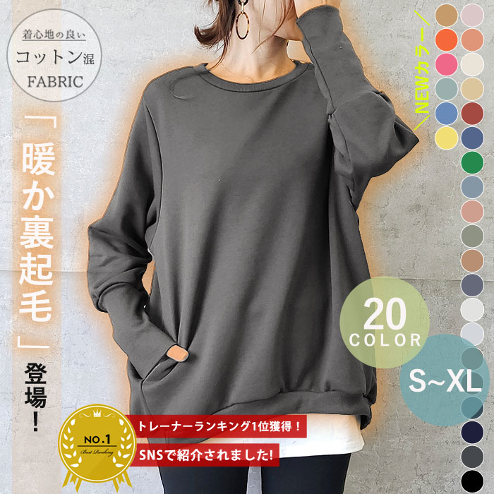 春の6色新登場!【半額1960円!クーポンで!2/7 12:59迄】 ポケットが付いた! コットン混♪ トレーナー 裏起毛 レディース おしゃれ 極暖 大きいサイズ スウェット メンズ ユニセックス リブ長 トップス 長袖 無地 部屋着 秋 冬 (送料無料)[郵3]^t015+t1036^楽天市場${EVENT_LABEL_01_TEXT}