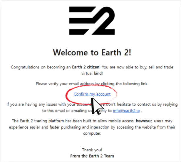 登録したメールに入るとEarth2から来たメールが有ります。