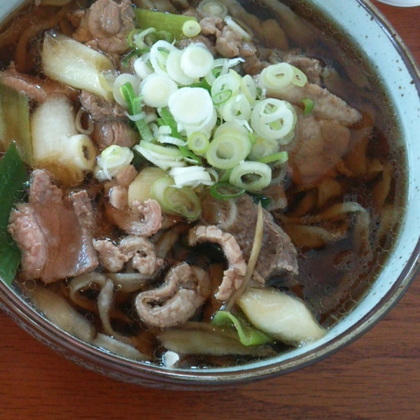 そばは更級とか田舎そばと全く別の手でちぎってひねった平打ち麺。そこに関西風の出汁に鴨の脂が混ざっていい塩梅。