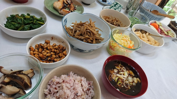そして、写真の左手前に写っている椎茸ですが、実はぬか漬けなんです。たまたま見ていた料理サイトで知ったのですが、ぬか床の水分が増えてしまった時に、乾物の干し椎茸を入れると、水分を吸ってくれるし、ぬか床の味も良くなるし、椎茸も食べられるし、一石三鳥らしいのです。