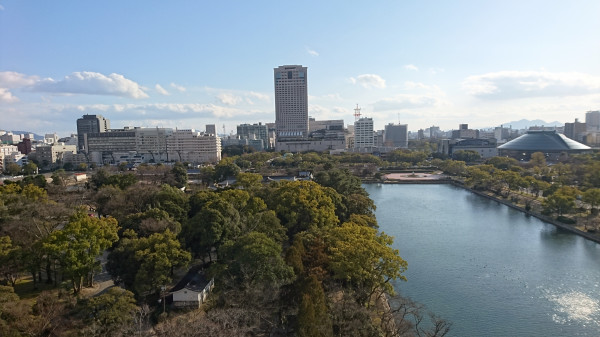 お城の最上階から見た景色。小さいですが、原爆ドームもみえます。写真では、右上のあたり。