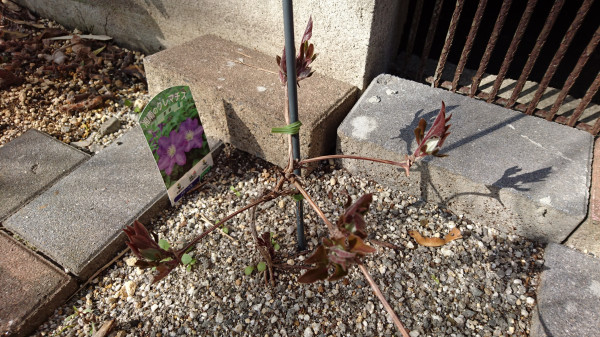 実家の母に買ってもらったクレマチス、地植えして初めての春ですが、無事に育っていて一安心です。