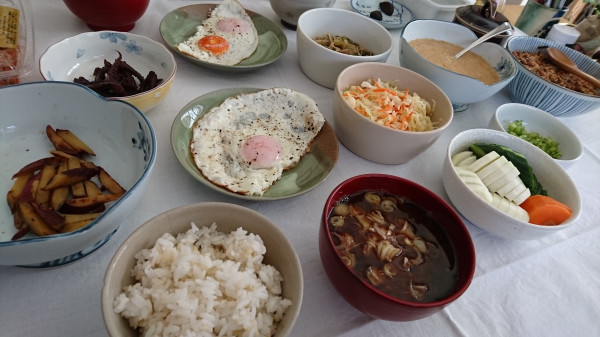 そんな私のつぶやきを聞いて、だーりんが私の目玉焼きの白身を多くしてくれました。その代わりにだーりんは黄身が2個です。
