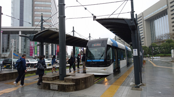 乗ってきたのは富山ライトレールと言う電車です。路面電車のような格好です。富山駅から富山港の近くまで行くことが出来ます。特に目的地は無いけれど、ぶらりと乗ってきました。終点は岩瀬浜と言う駅でしたが、雨が本降りになってきたため、浜には行かずに、すぐに帰ってきました。