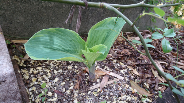 毎日少しずつ開いているギボウシは、今日はこんな感じ。立派で頼もしい大きな葉っぱです。