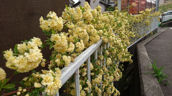 モッコウバラは、雨でずいぶん花びらが散ってしまいましたが、まだキレイです。つぼみがほぼ全部咲き終わりました。今年はたくさん咲いたなあ。
