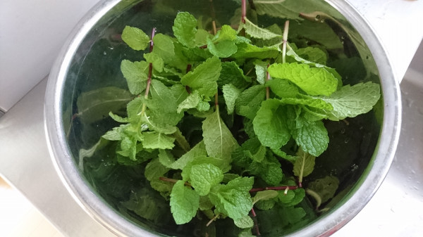 お昼ご飯にカレーを食べましたが、食後のお茶はミントティーを淹れました。今日、午前中に庭で摘んできたミントです。葉っぱをよく洗い、急須にたっぷりと入れて、お湯を注ぐだけで出来上がりです。