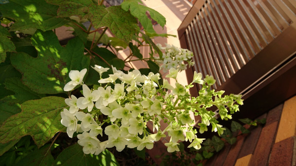 カシワバアジサイは、今年はこの2輪だけ。きれいに咲いています。