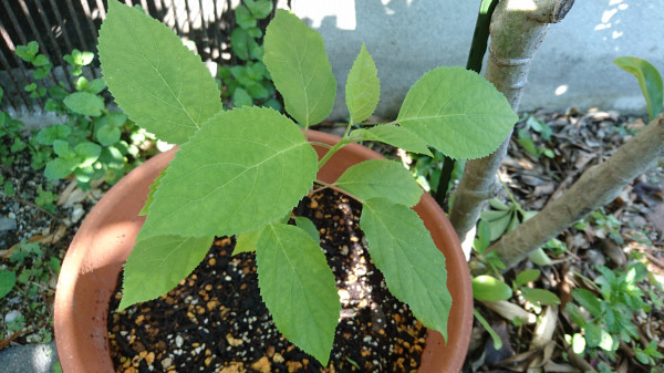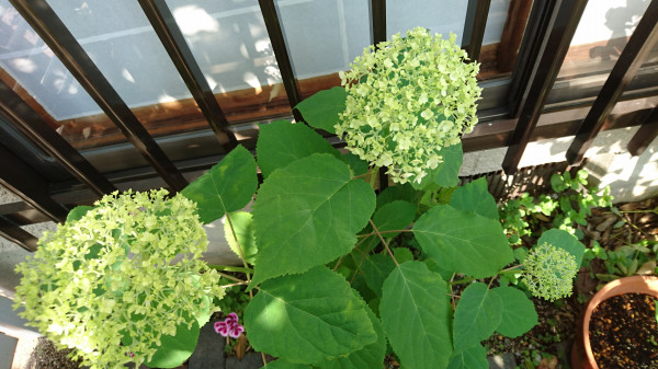 友人にもらったアナベルの苗も、少しずつ大きくなりました。花は無いけれど、葉っぱは元気に開いています。