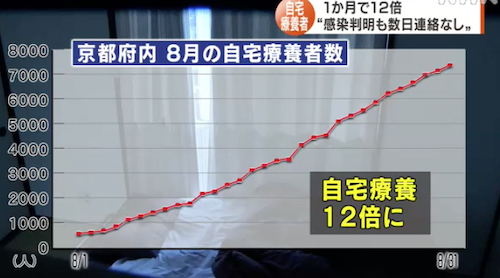 京都府内の31日時点の自宅療養者は7258人と、8月の1か月で12倍余りに急増しています。