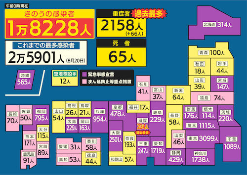 【国内感染】新型コロナ 65人死亡 1万8229人感染