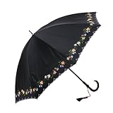 - 遮光小花刺繍ショート日傘 ブラック×ピンク/作者不明