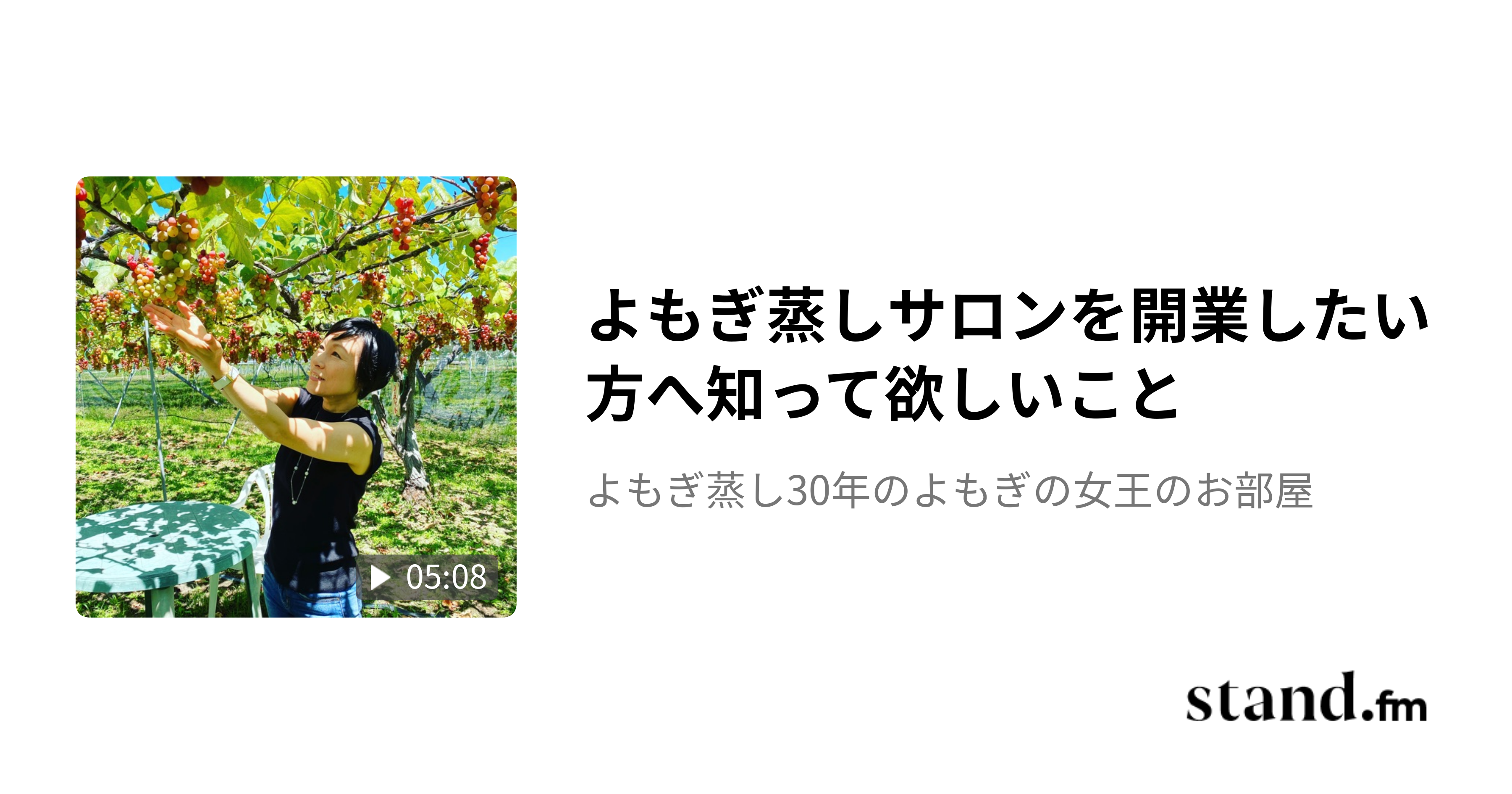 よもぎ蒸しサロンを開業したい方へ知って欲しいこと - よもぎ蒸し30年のよもぎの女王のお部屋 | stand.fmオーガニックで日本を元気に https://www.yomogi-na.com/ よもぎ温熱セラピー協会 https://www.onnetu-yomogi.com/ 商品のご購入(タニ子のセレクトショップ) https://mommybaby.theshop.jp/ よもぎ蒸し歴25年以上 体質改善サロン30年…stand.fm